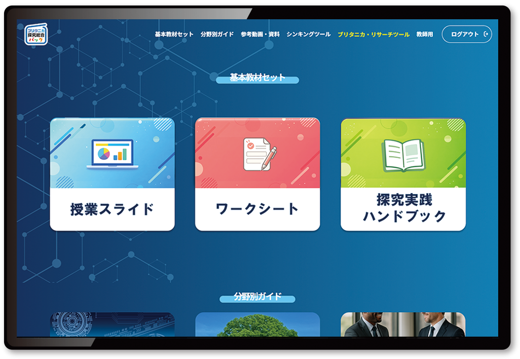今回のリニューアルでは、実際に授業で『ブリタニカ探究総合パック』を活用いただいた高校教員の意見を参考に、教材の構成や使いやすさの改善を行いました。特に、生徒が探究のプロセスをスムーズに進められるよう、ワークシートや指導案、学習のガイドとなる教材内容を見直しています。