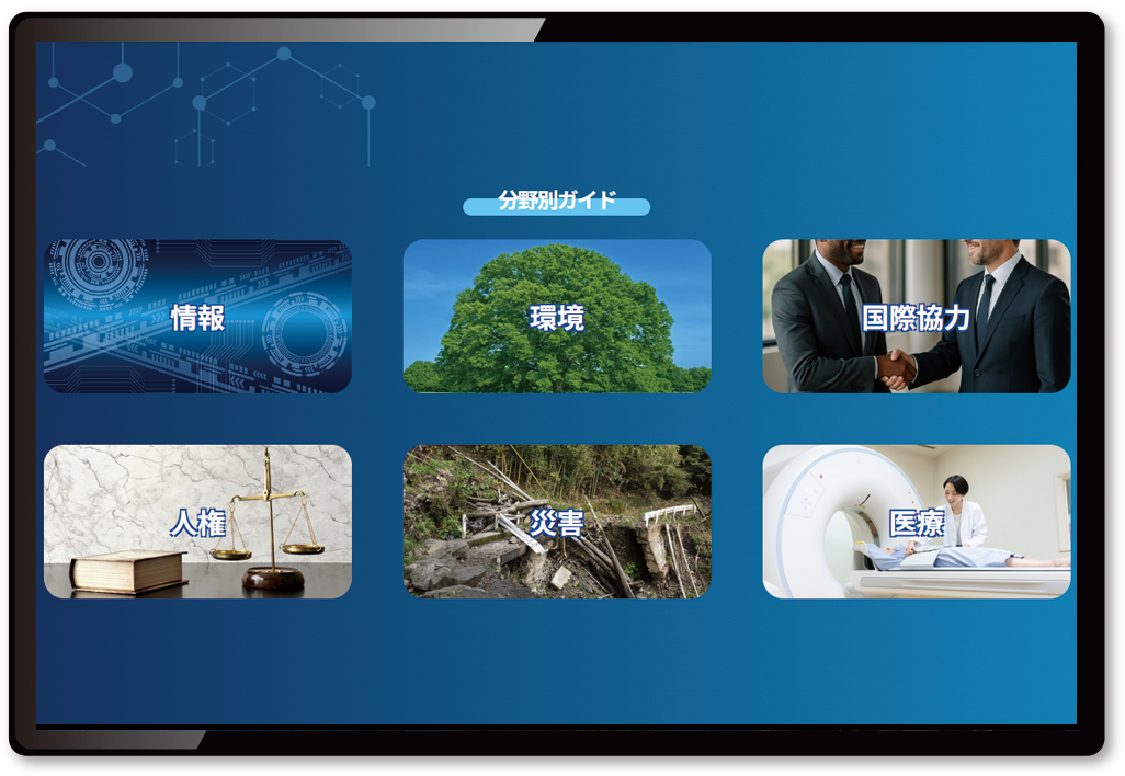 *6つの分野: 情報・環境・国際協力・人権・災害・医療